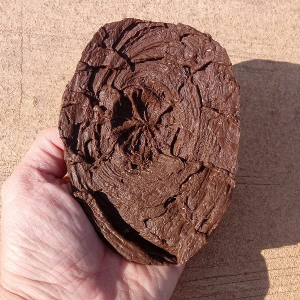 DETALLERO de silicona flexible y reutilizable con acabado de rama cortada de pino bien marcado. Extraído sobre pino natural. Combinar con la manta de pino.